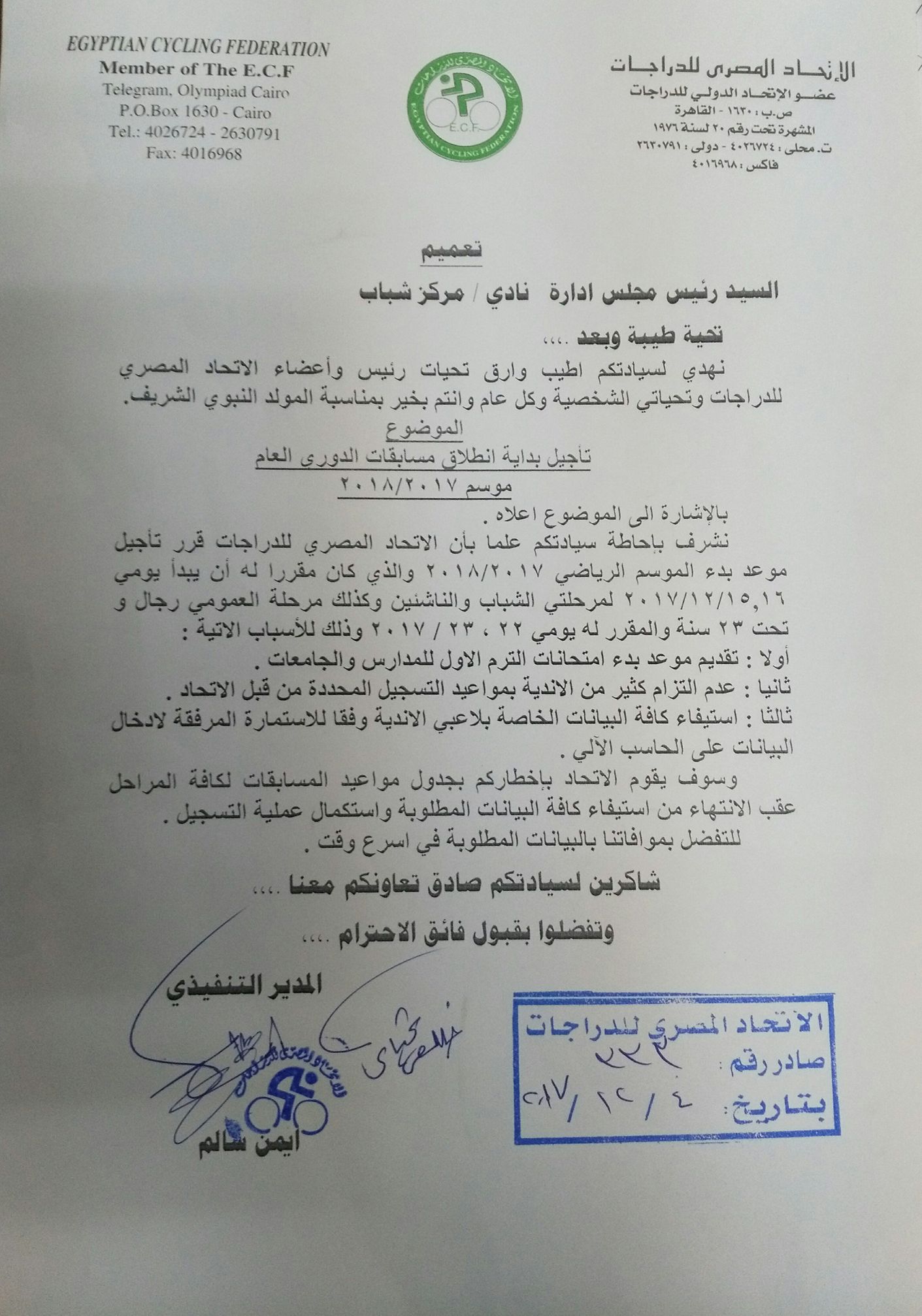 بخصوص مسابقات الدورى العام