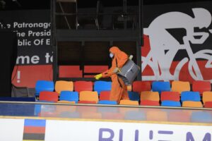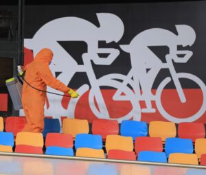 تحرص اللجنة المنظمة لبطولة العالم للناشئين لدراجات المضمار برئاسة الدكتور وجيه عزام – رئيس الاتحادين المصري والأفريقي للدراجات ونائب رئيس الاتحاد الدولي- على تطبيق الاجراءات الاحترازية الطبية لمجابهة فيروس كورونا ، وتنفيذ عمليات تعقيم متواصلة لمضمار الدراجات الدولي باستاد القاهرة، والذي تقام عليه منافسات البطولة التي تمتد حتى يوم 5 سبتمبر الجاري.