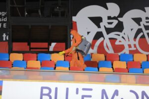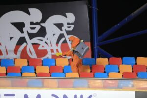 وتقوم فرق متخصصة بتعقيم كامل للمضمار بواقع 4 مرات يوميًا، حيث تتم أول عمليات التعقيم قبل انطلاق منافسات الفترة الصباحية، ويتم التعقيم مرة أخرى بعد انتهاء سباقات الفترة الصباحية، كما يخضع المضمار لأعمال تعقيم كاملة قبل انطلاق سباقات الفترة المسائية، بجانب مرة أخرى بعد انتهاء سباقات تلك الفترة.