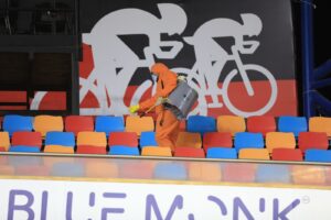 تعقيم مضمار الدراجات 4 مرات يوميا في بطولة العالم بالقاهرة