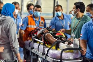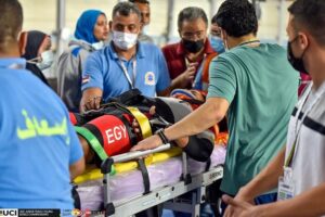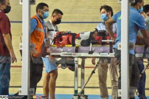 ومنع الحادث اللاعب محمود بكر من استكمال السباق رغم أنه كان يحتل المركز الاول في سباق الـ 25 كم “100 لفة”، وتم نقل اللاعب للمستشفى للخضوع للآشعة ومعرفة حجم إصابته وكشف التشخيص الاولي اصابته في الحوض والرقبة مما اصاب الجماهير المتواجدة بحزن شديد وصدمة خاصة ان اصابة محمود يكر قوية وكان اللاعب ينافس علي الميداليات الاولي في هذا السباق.