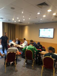 وأضاف أن كل بعثة منتخب مشارك بالبطولات يتواجد معها مرافق دائم من اللجنة المنظمة للبطولات، وذلك لتسهيل أي عقبات قد تواجههم، وأشار إلى أن كل منتخب مشارك بالبطولات يتسلم جدول بمواعيد وأماكن إقامة تدريباته بمجرد وصوله إلى القاهرة، وشدد على أن اللجنة المنظمة للبطولة تحرص على التواصل مع كافة الوفود المشاركة على مدار الساعة ومتابعة تنفيذ برامجهم التدريبية طبقًا لما تم التخطيط له.