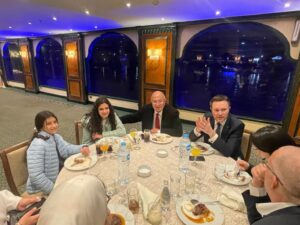 أقام الدكتور وجيه عزام النائب الاول لرئيس الاتحاد الدولي رئيس الاتحادين المصري والأفريقي للدراجات مأدبة عشاء مساء امس لرئيس الاتحاد الدولي للدراجات ديفيد لابرتيان واسرته بإحدى البواخر النيلية وذلك بحضور كبار مسئولي الاتحادين المصري والدولي للدراجات.